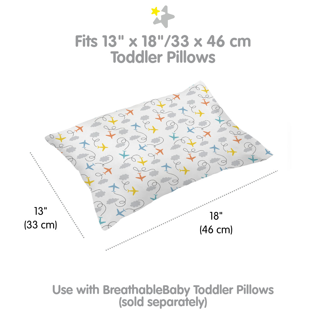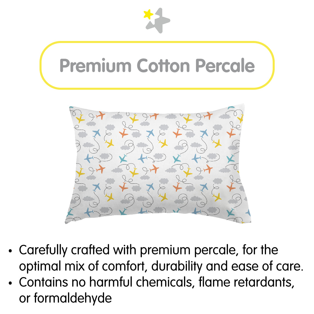 Cotton Percale Pillowcase, For 13" x 18"/33 x 46 cm Toddler Pillow, Airplanes (2-Pack)