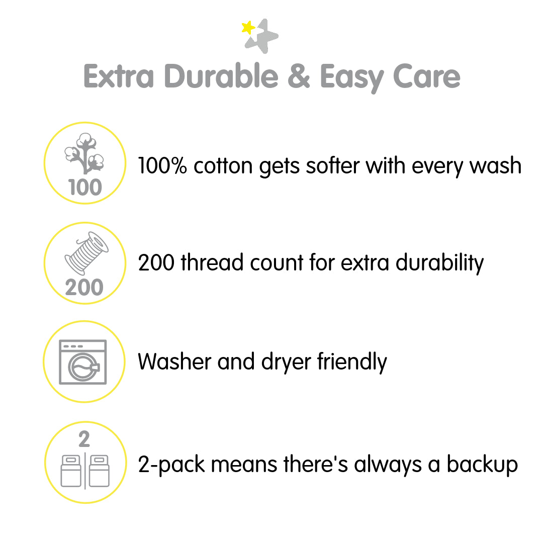 • EXTRA DURABLE & LONG-LASTING: 200 thread count makes these pillowcases extra durable to last through the toddler stage.  Do not use before 2 years of age.