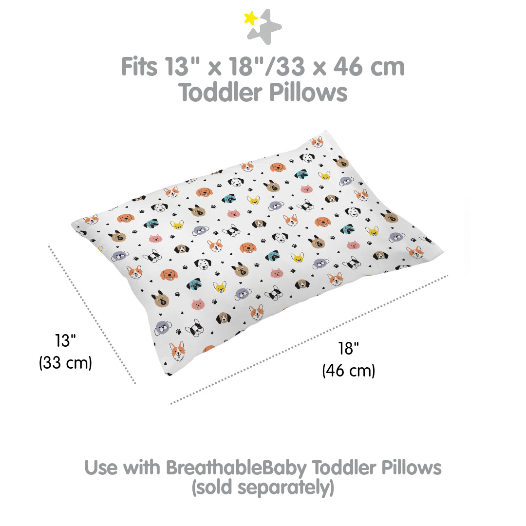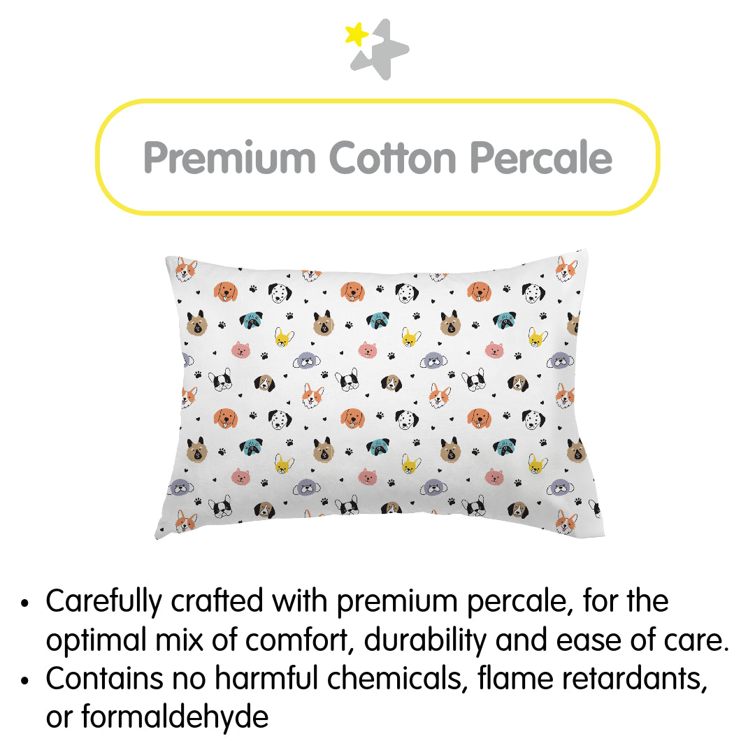 Cotton Percale Pillowcase, For 13" x 18"/33 x 46 cm Toddler Pillow, Dogs (2-Pack)