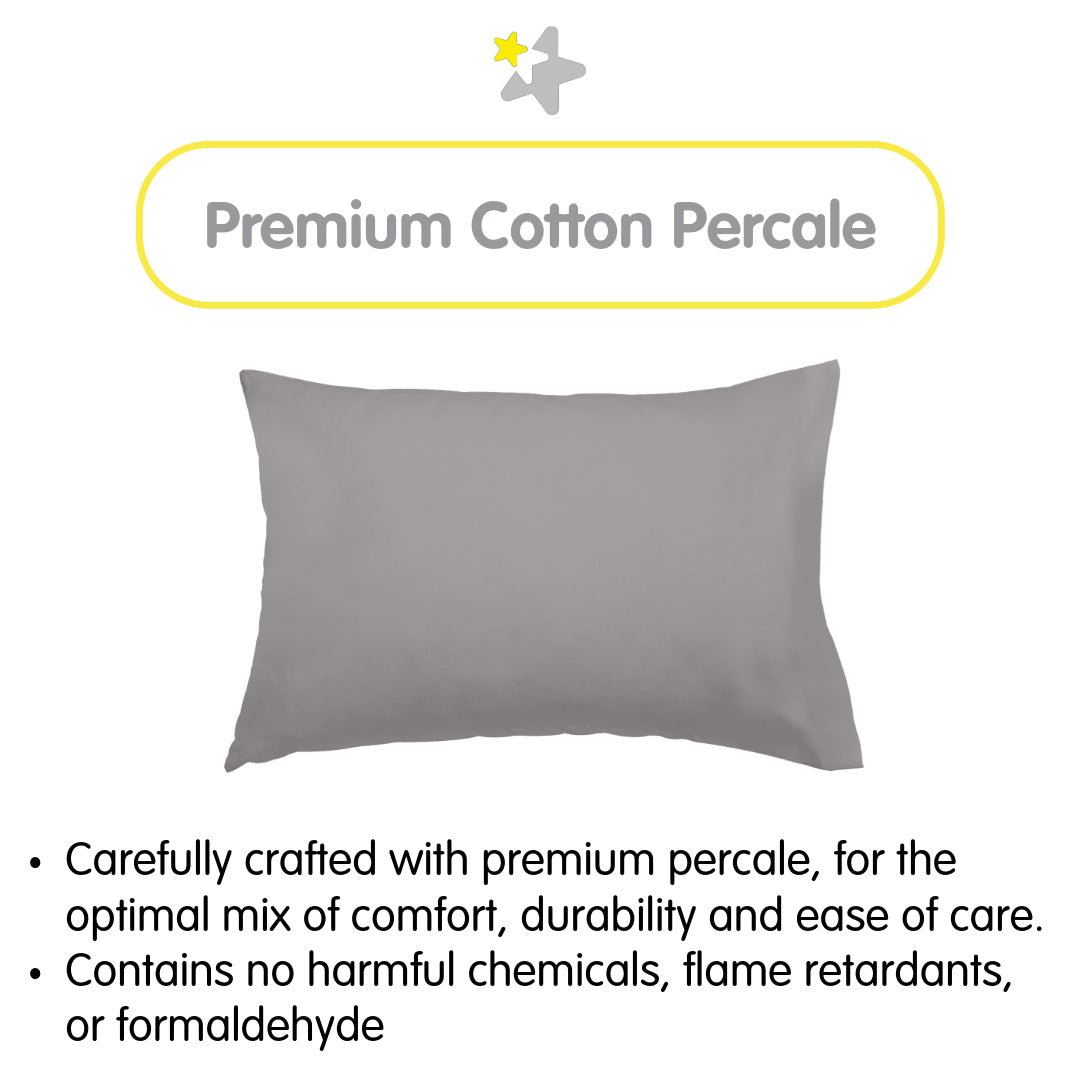 Cotton Percale Pillowcase, For 13" x 18"/33 x 46 cm Toddler Pillow, Gray (2-Pack)