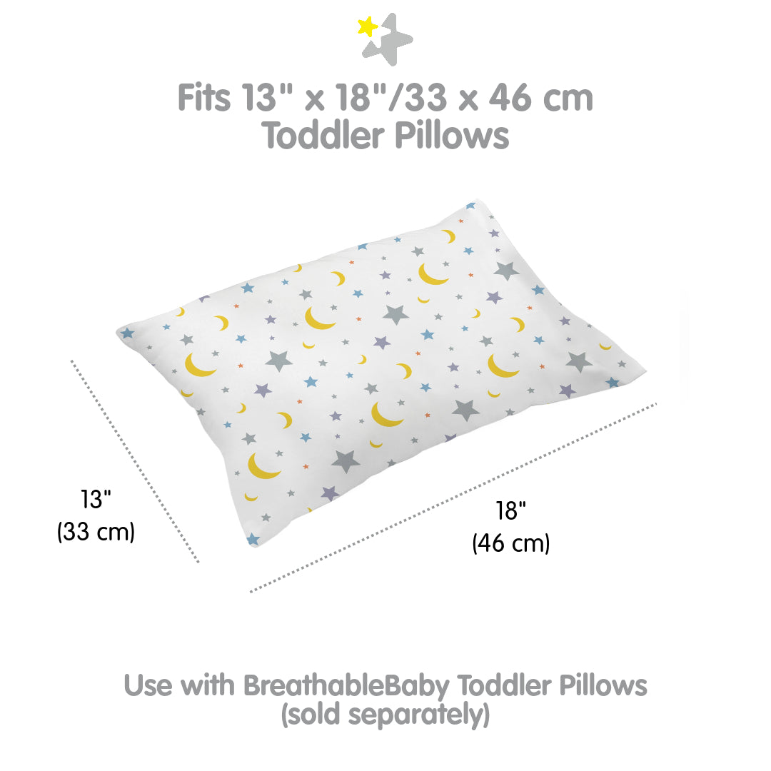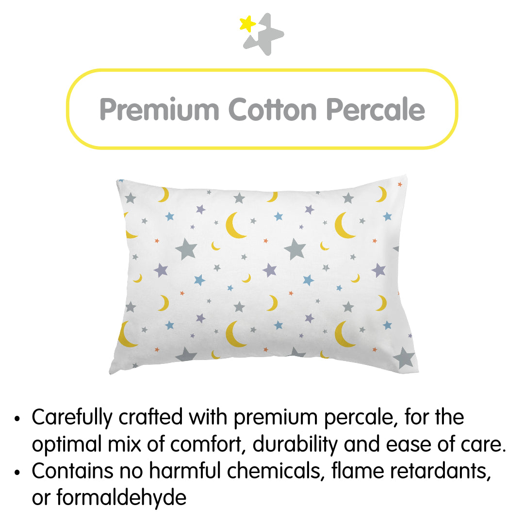 Cotton Percale Pillowcase, For 13" x 18"/33 x 46 cm Toddler Pillow, Moon & Stars (2-Pack)
