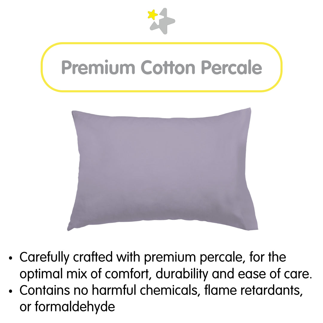 Cotton Percale Pillowcase, For 13" x 18"/33 x 46 cm Toddler Pillow, Purple (2-Pack)