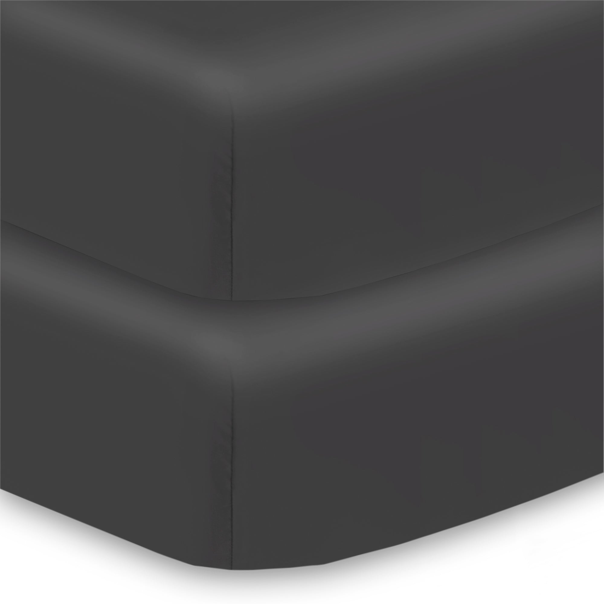 Cotton Percale Fitted Sheet, For 52" x 28"/132 x 71 cm Crib & Toddler Bed Mattress, Black (2-Pack)