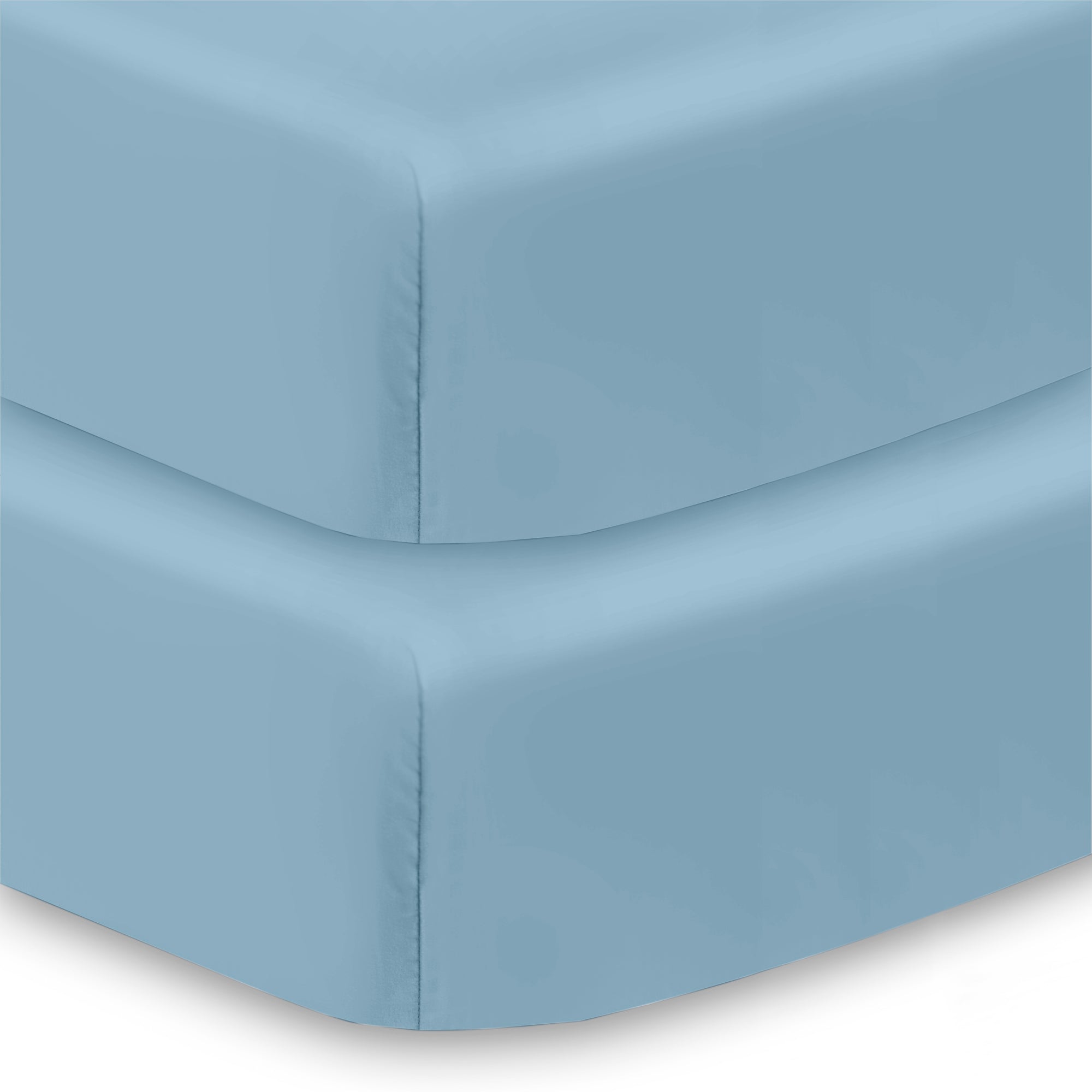 Cotton Percale Fitted Sheet, For 52" x 28"/132 x 71 cm Crib & Toddler Bed Mattress, Blue (2-Pack)