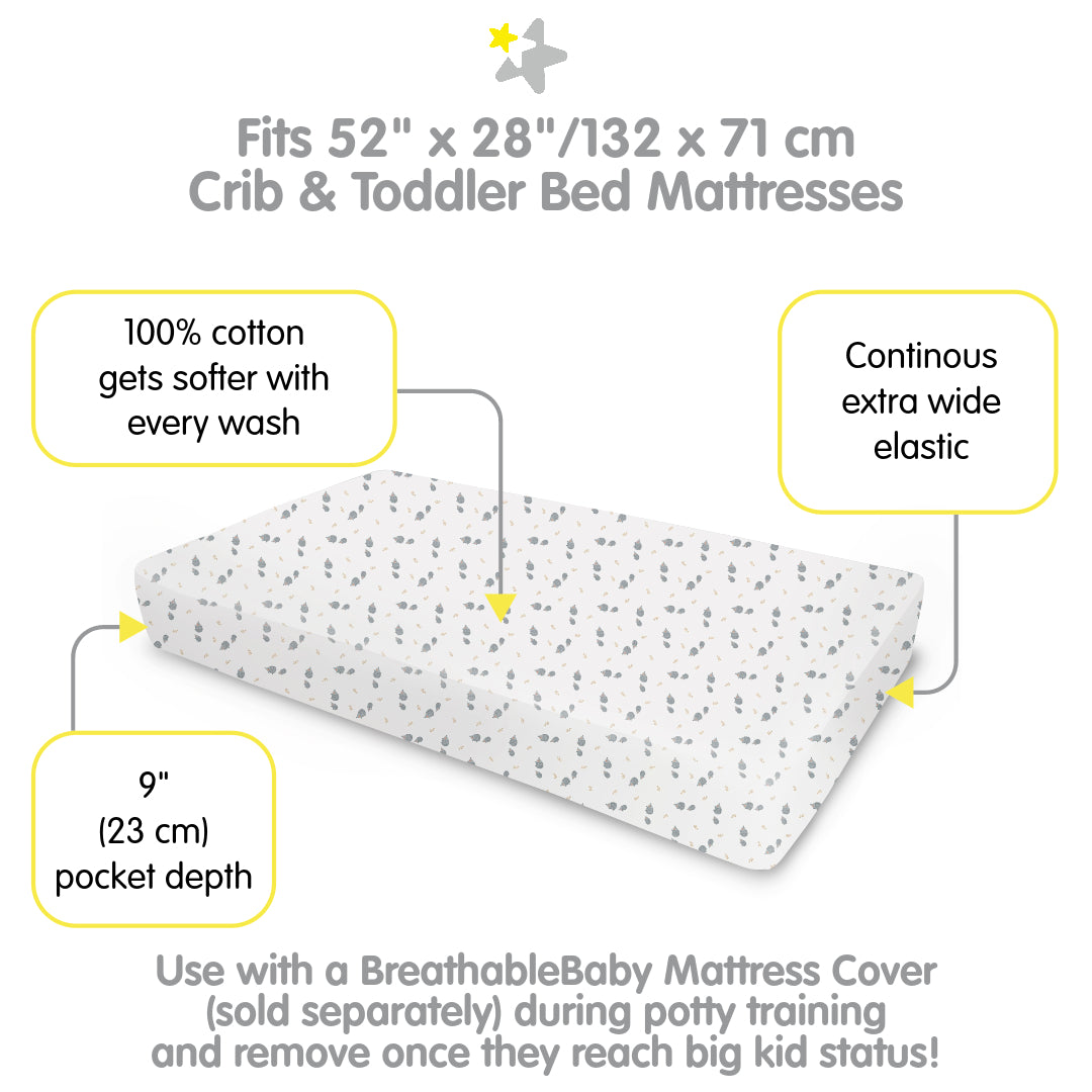 • EXTRA DURABLE & LONG-LASTING: 200 thread count makes these sheets extra durable to last through the toddler stage. Use with a BreathableBaby Mattress Cover (sold separately) during potty training!