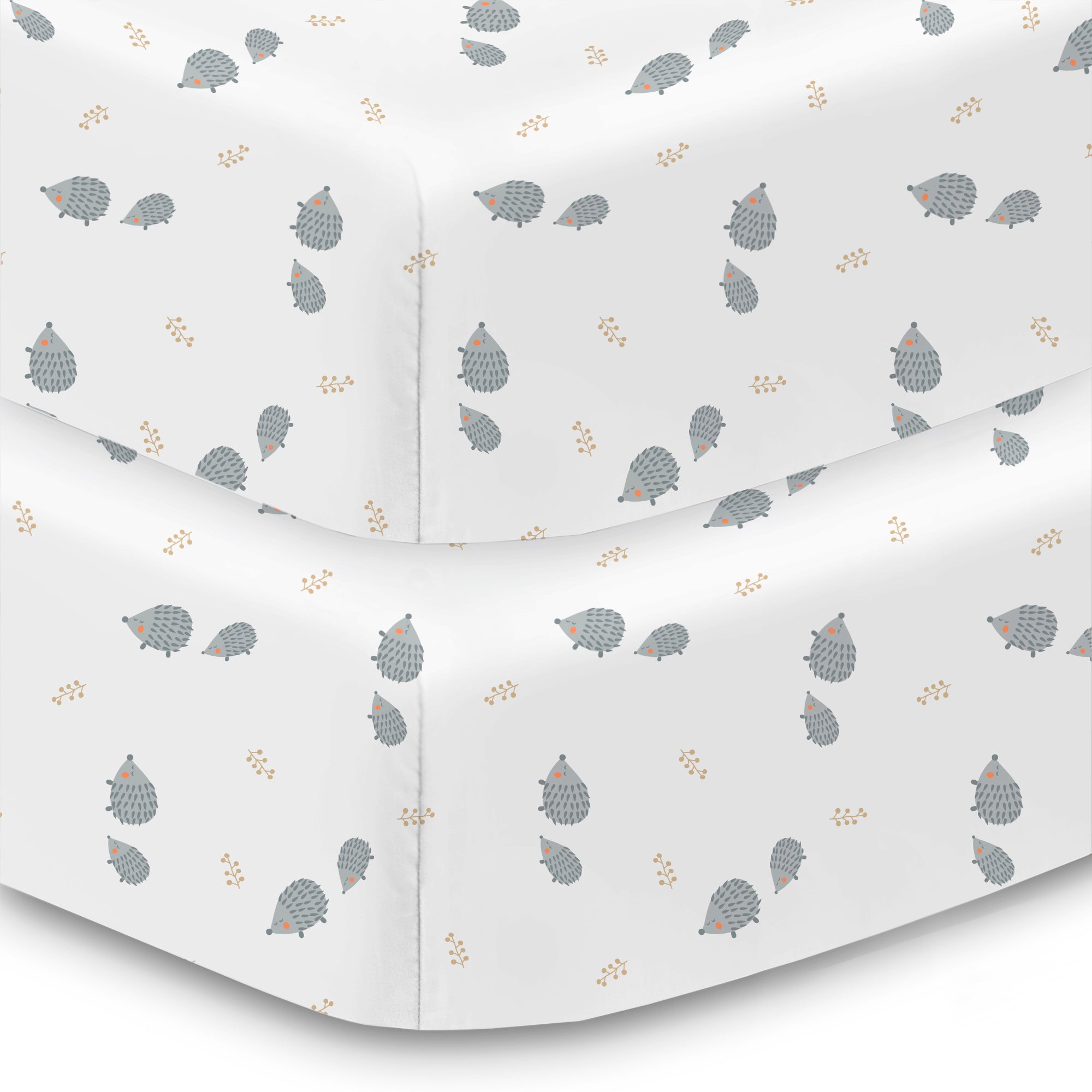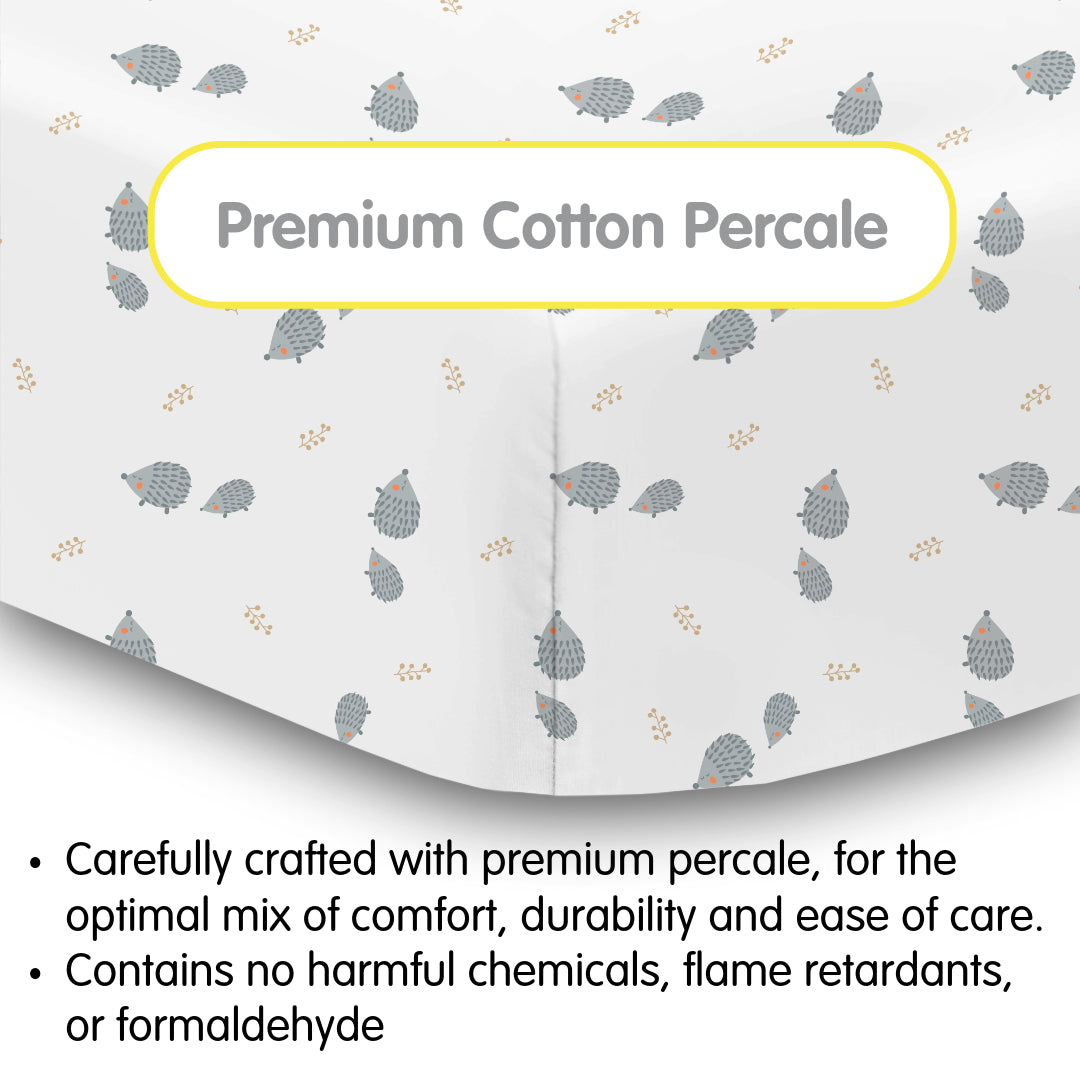 • Cotton Percale Fitted Sheet, For 52" x 28"/132 x 71 cm Crib & Toddler Bed Mattress, Hedgehogs (2-Pack)