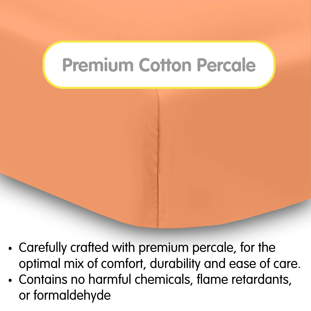 • Cotton Percale Fitted Sheet, For 52" x 28"/132 x 71 cm Crib & Toddler Bed Mattress, Orange (2-Pack)