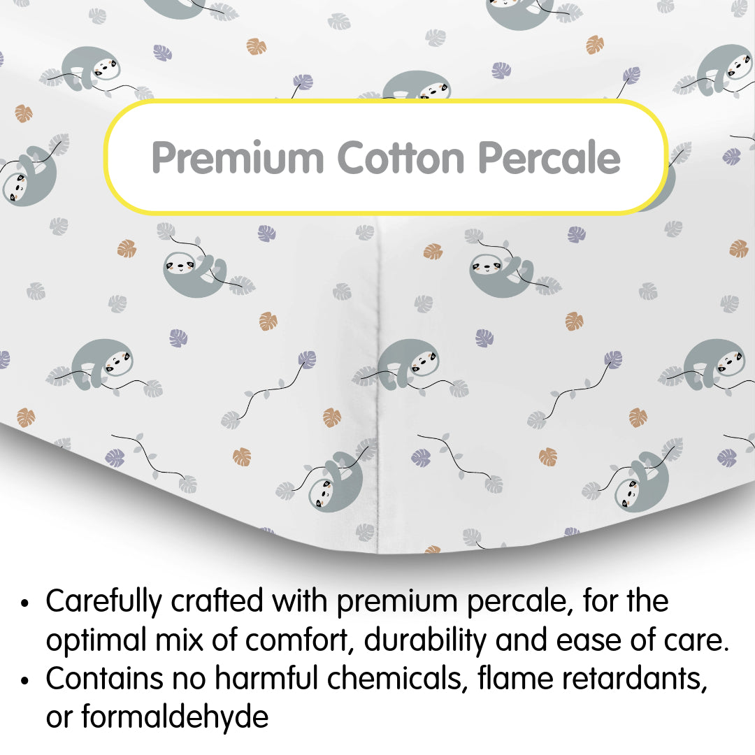 Cotton Percale Fitted Sheet, For 52" x 28"/132 x 71 cm Crib & Toddler Bed Mattress, Sloths (2-Pack)