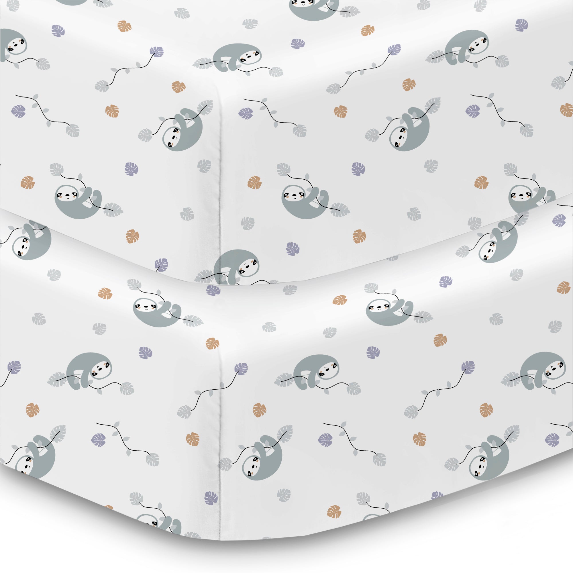 • Cotton Percale Fitted Sheet, For 52" x 28"/132 x 71 cm Crib & Toddler Bed Mattress, Sloths (2-Pack)